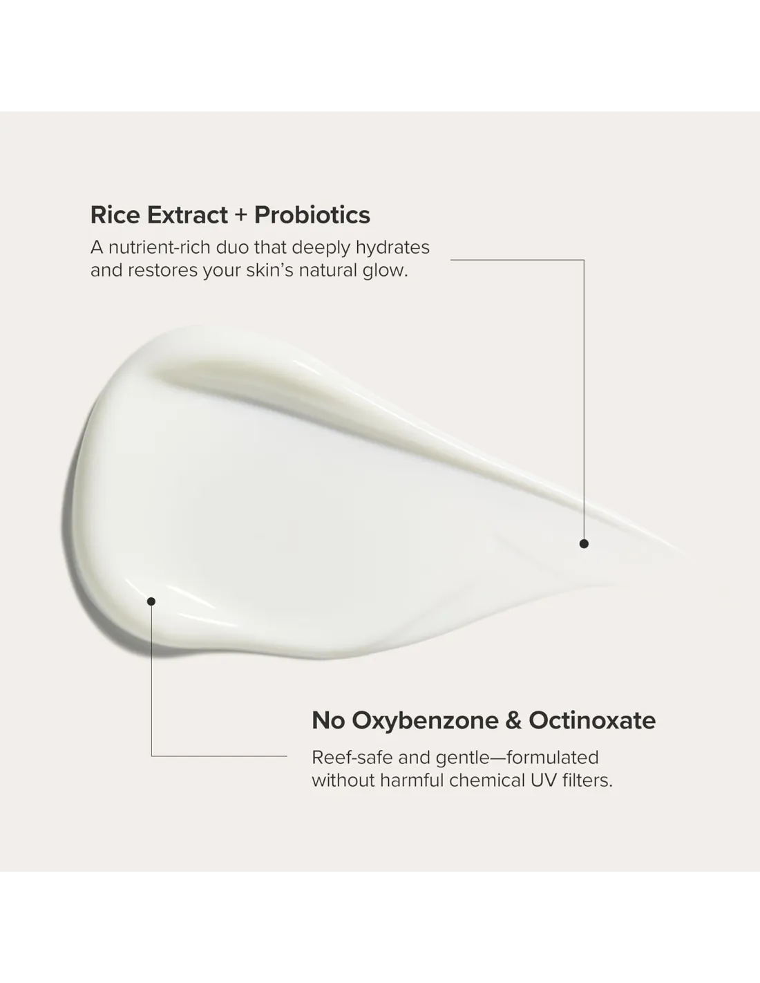Water, Oryza Sativa (Rice) Extract (30%), Dibutyl Adipate, Propanediol, Diethylamino Hydroxybenzoyl Hexyl Benzoate, Polymethylsilsesquioxane, Ethylhexyl Triazone, Niacinamide, Methylene Bis-benzotriazolyl Tetramethylbutylphenol, Coco-caprylate/Caprate, Caprylyl Methicone, Diethylhexyl Butamido Triazone, Glycerin, Butylene Glycol, Oryza Sativa (Rice) Germ Extract, Camellia Sinensis Leaf Extract, Lactobacillus/Rice Ferment, Schisandra Chinensis Fruit Extract, Panax Ginseng Root Extract, Phellodendron Amurense Bark Extract, Adenosine, Diethylhexyl Syringylidenemalonate, Arginine, Carbomer, Saccharum Officinarum (Sugarcane) Extract, Tocopherol, Rice Germ Oil, Rice Bran Oil, 1,2-Hexanediol, Poly C10-30 Alkyl Acrylate, Polyglceryl-3 Methylglucose Distearate, Sodium Stearoyl Glutamate, Stearic Acid, Behenyl Alcohol, Xanthan Gum.